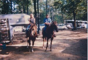 Each morning, we would ride for miles over the hilly, rocky terrain, but the trail ride, itself, wasn’t my favorite part of the weekend. Saturday afternoon meant swimming at Lake Carlton and Saturday night was the potluck dinner and dance, complete with a local band. It’s where I first learned to two-step. On Sunday afternoon, we would often drive into the nearby town of Wilburton for a hot lunch at Pizza Hut and then head back to camp to compete in the beloved bareback games.