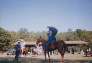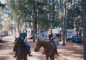 Each morning, we would ride for miles over the hilly, rocky terrain, but the trail ride, itself, wasn’t my favorite part of the weekend. Saturday afternoon meant swimming at Lake Carlton and Saturday night was the potluck dinner and dance, complete with a local band. It’s where I first learned to two-step. On Sunday afternoon, we would often drive into the nearby town of Wilburton for a hot lunch at Pizza Hut and then head back to camp to compete in the beloved bareback games.